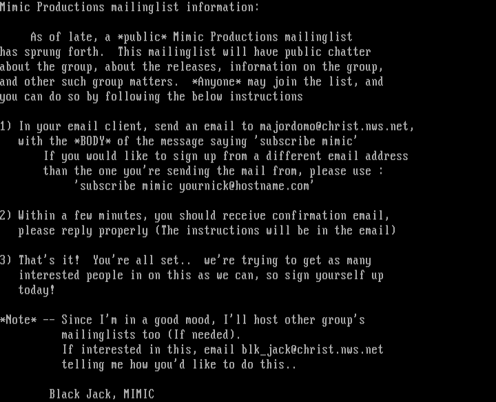 1 In your email client, send an email to majordomo@christ.nws.net,