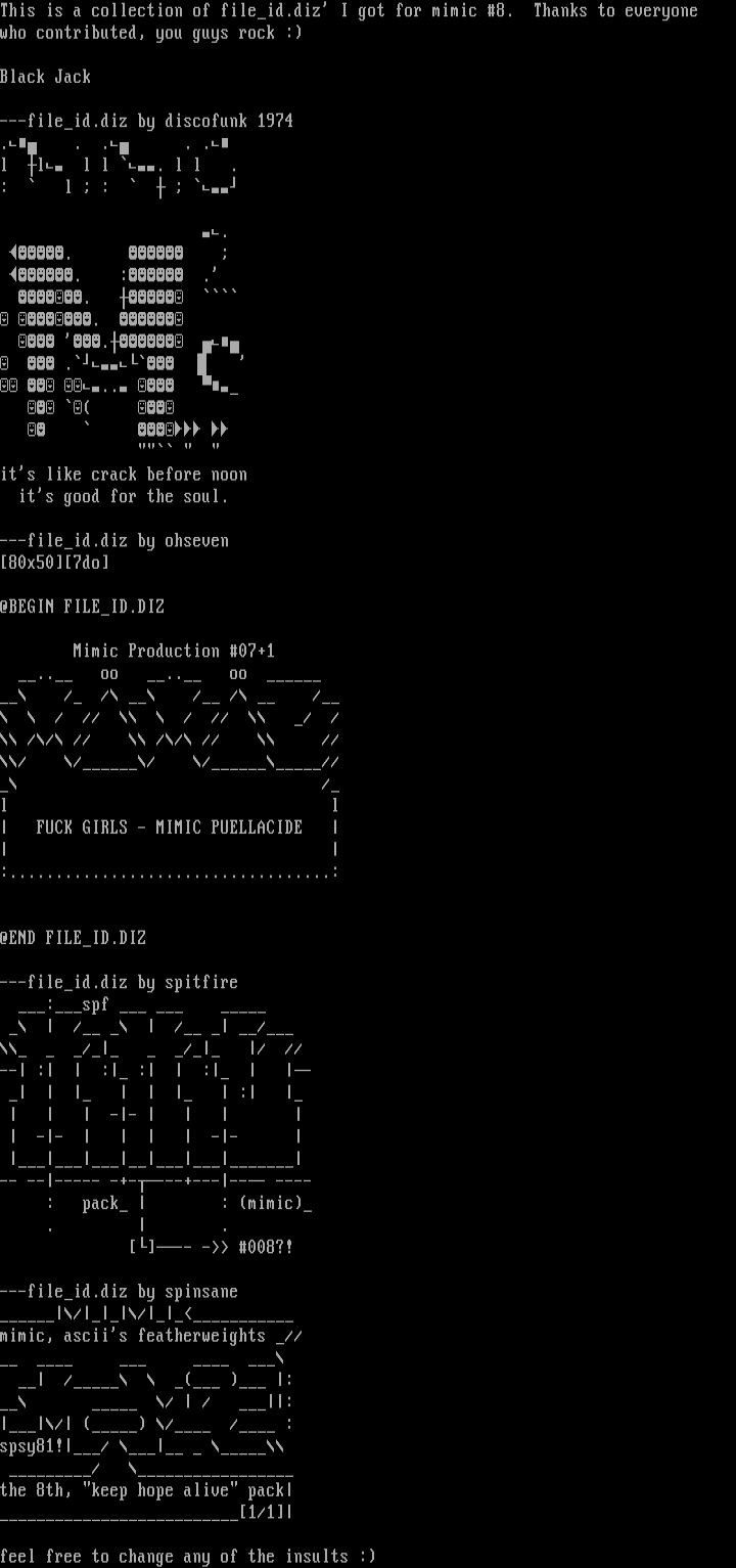 This is a collection of fileid.diz I got for mimic 8. Thanks to everyone