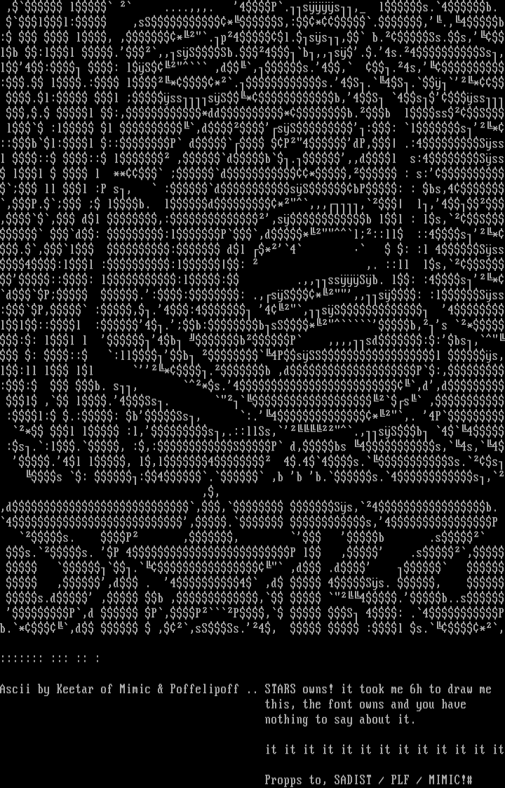 Ascii by Keetar of Mimic Poffelipoff .. STARS owns! it took me 6h to draw me