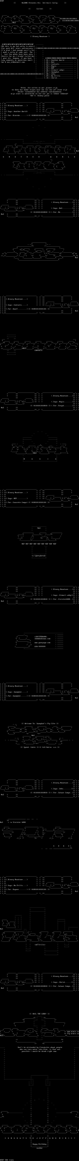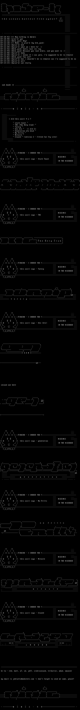 aeternam (4) antik (1) arlequin (1) black jack (3) brane (1) cat-dog (2) el nino (1) essence (2) funk-e (1) genick (2) gravedancer (4) haji (3) keetar (3) kingpin octopus (1) mark ryder (4) martz (1) metal militia (4) mimic ascii (3) mjay (1) mydknight (1) nahal (2) nasone (1) polygon (3) polymorph (1) retribution (1) revolution (3) rko diode (1) sinister 6000 (5) tachibana (1) tesko suicide (1) thanatos-mimic (1) the fluffy lapin (2) tum (1) vapor (1) wise kid (1)