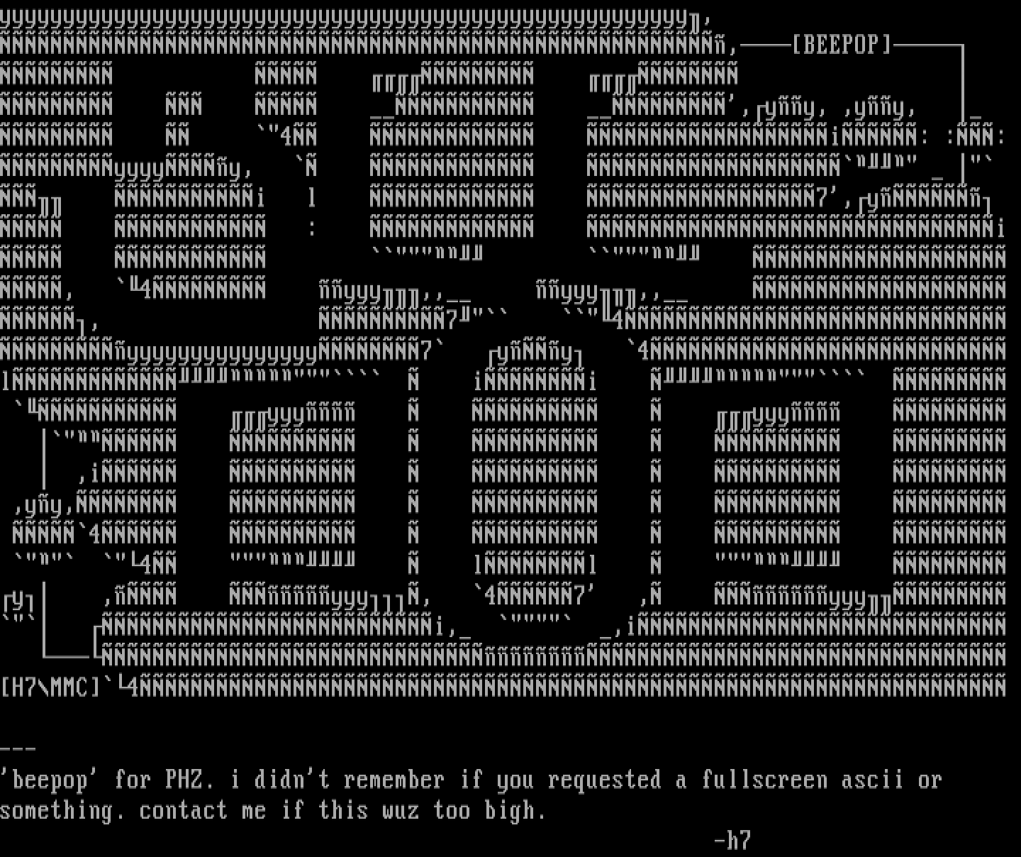 beepop for PHZ. i didnt remember if you requested a fullscreen ascii or