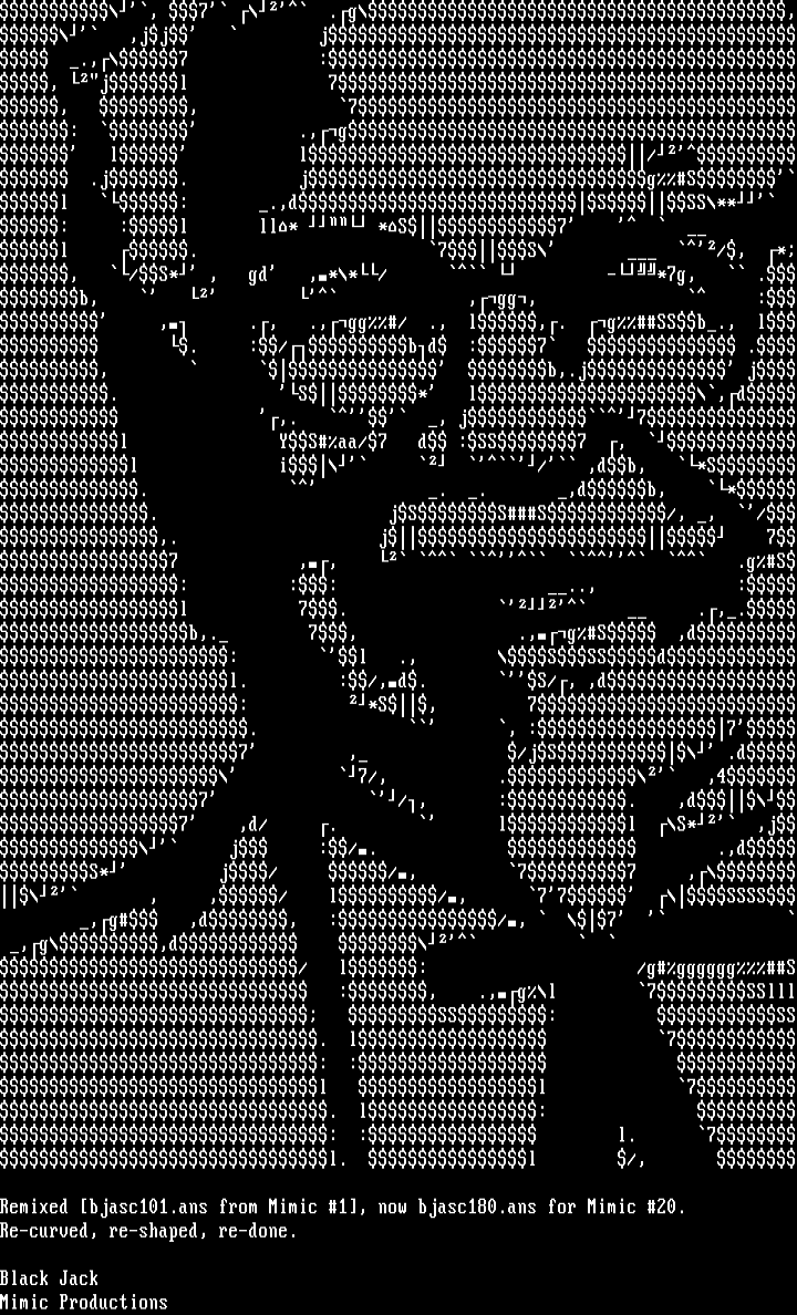 / l: /gggggggS :, .,gl 7SSlll SS: SS. l 7: : l l 7. l: : : l. 7l. l /, Remixed bjasc101.ans from Mimic 1, now bjasc180.ans for Mimic 20.