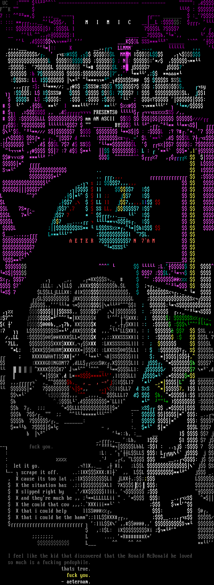 b *::b, : l 7 j ,,, :Lb, l l 7 j-- fuck you. *LbbL :l : ..j : 7 : :L: . LLL : Lyy j j : . ,, L ,,: j : let it go. .?lX,. , Xl, LL j S -- scrape it off. ..:lXXXXXXl ,, LL ** j . , X cause its too lat ..:lXLl jLXX, L X the situation has .:lXLl 7X : X slipped right by ./XXllii. X and theyre much be ,, **LLLLLLii . * : .,S * X the could that cov ,,,:.XXXiii** *