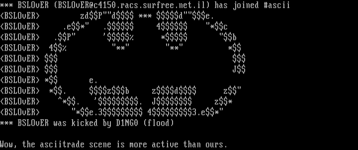 *** BSLOvER BSLOvER@c4150.racs.surfree.net.il has joined ascii