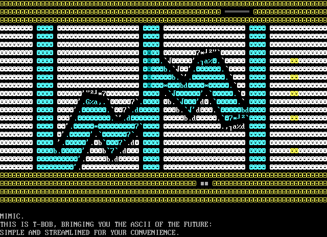 THIS IS T-BOB, BRINGING YOU THE ASCII OF THE FUTURE: