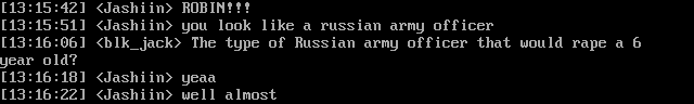 13:16:06 blkjack The type of Russian army officer that would rape a 6