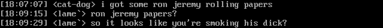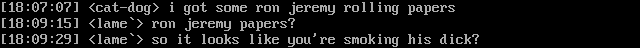 18:07:07 cat-dog i got some ron jeremy rolling papers