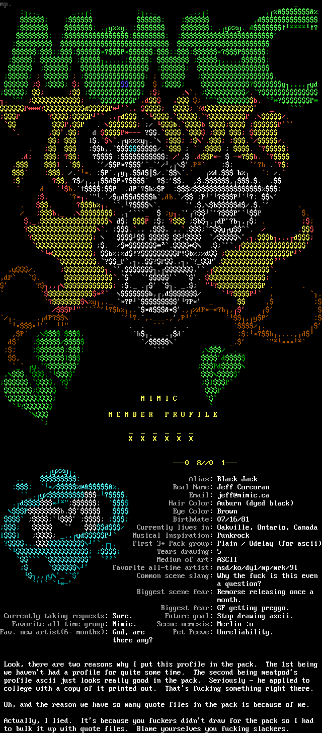profile ascii just looks really good in the pack. Seriously - he applied to