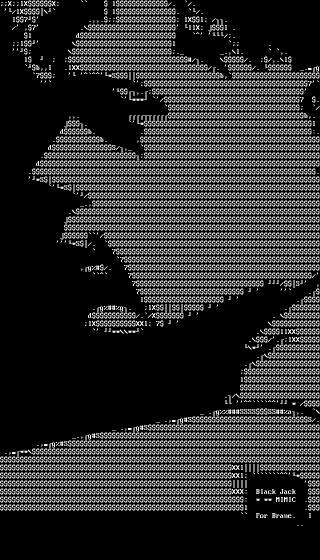 db. .:. .b. , dS/, . d .. *S *S / ., . j j/ *S/. 7 7 ,g/. 7 7/ 7 /S , 7 . l . .gg. lX . d/./X . lXXXl 7 **** .llXX ./.lXX * . . . l ./ * / .gSSSSSSa,. .,gSS/. .,gS .,gS .,gS .,**XXlXXl * XXX: Black Jack : * ** MIMIC .l . For Brane. l