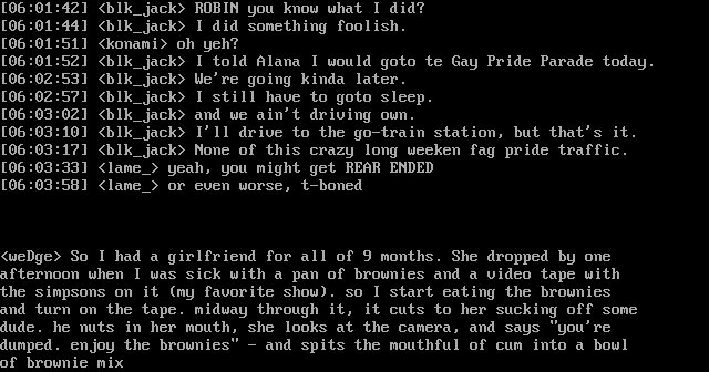 06:01:52 blkjack I told Alana I would goto te Gay Pride Parade today.
