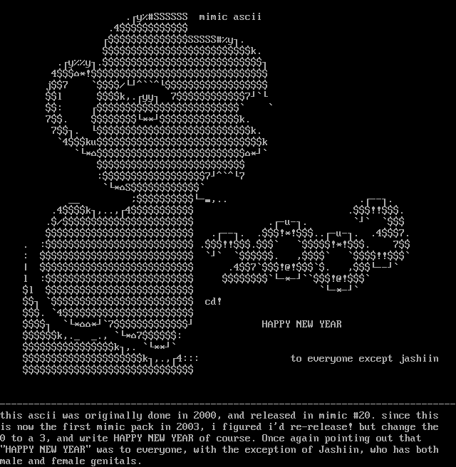 --------------------------------------------------------------------------------this ascii was originally done in 2000, and released in mimic 20. since this