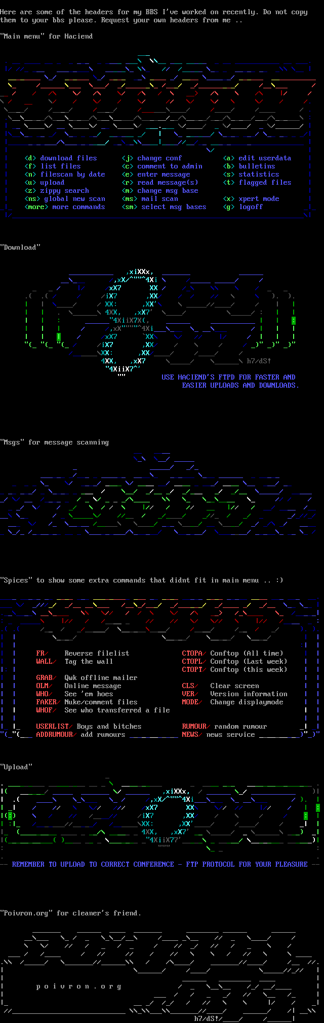 Here are some of the headers for my BBS Ive worked on recently. Do not copy