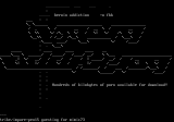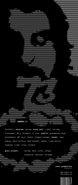 abstrakt (4) aeternam (1) barium (4) black jack (1) cat-dog (4) ddrj (6) dipswitch (1) discyple (20) h7 (2) haliphax (3) jashiin (4) jeffie (3) knocturnal (1) lame (4) m0lo (1) maytag (1) mimic ascii (6) nstage (1) potzkoten (1) ricky martin (1) roodolph (1) shrimp (2) tribe (1) wise kid (1)