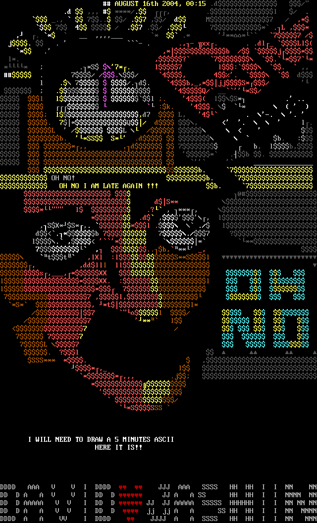 I WILL NEED TO DRAW A 5 MINUTES ASCII