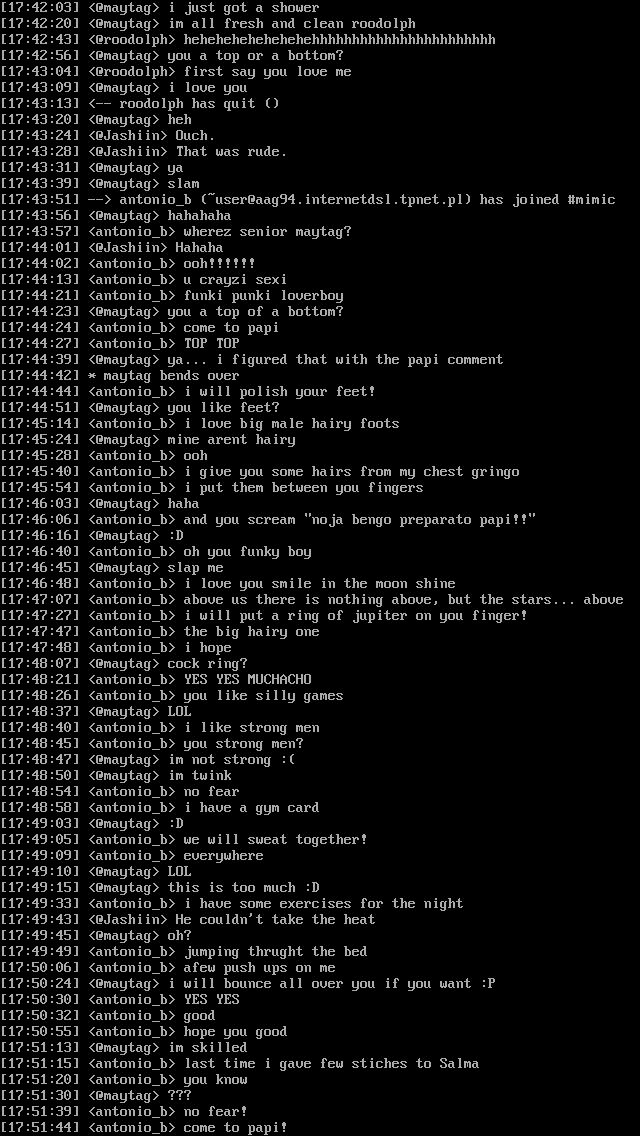 17:45:40 antoniob i give you some hairs from my chest gringo