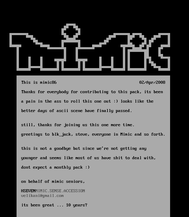 greetings to blkjack, steve, everyone in Mimic and so forth.
