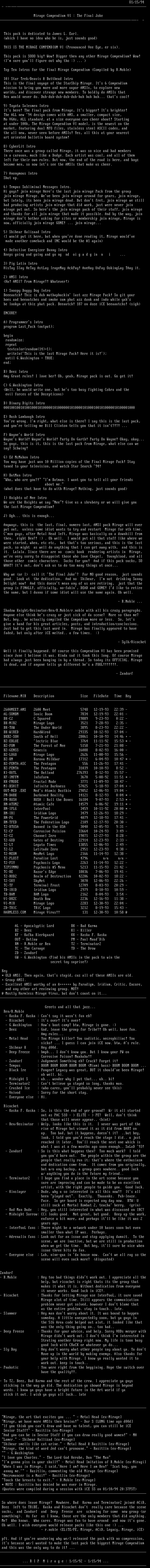 Mirage, we have more ANSIs then brains! - Dar S LONG time ago d00d