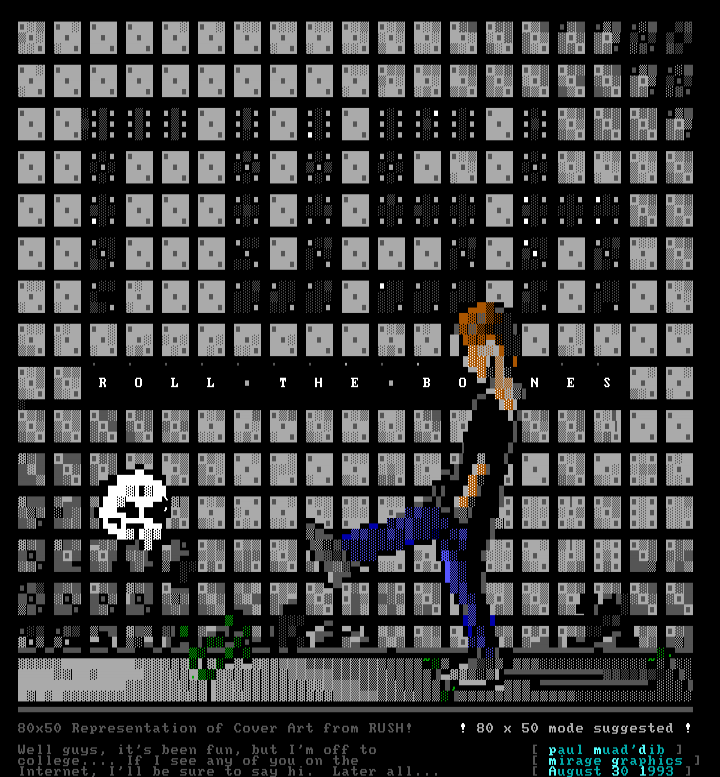 80x50 Representation of Cover Art from RUSH! ! 80 x 50 mode