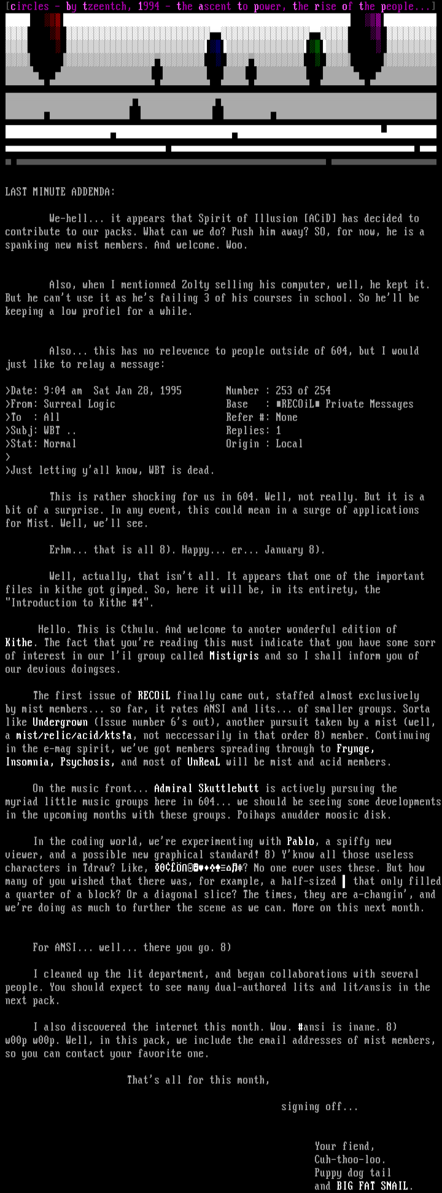 From: Surreal Logic Base : RECOiL Private Messages