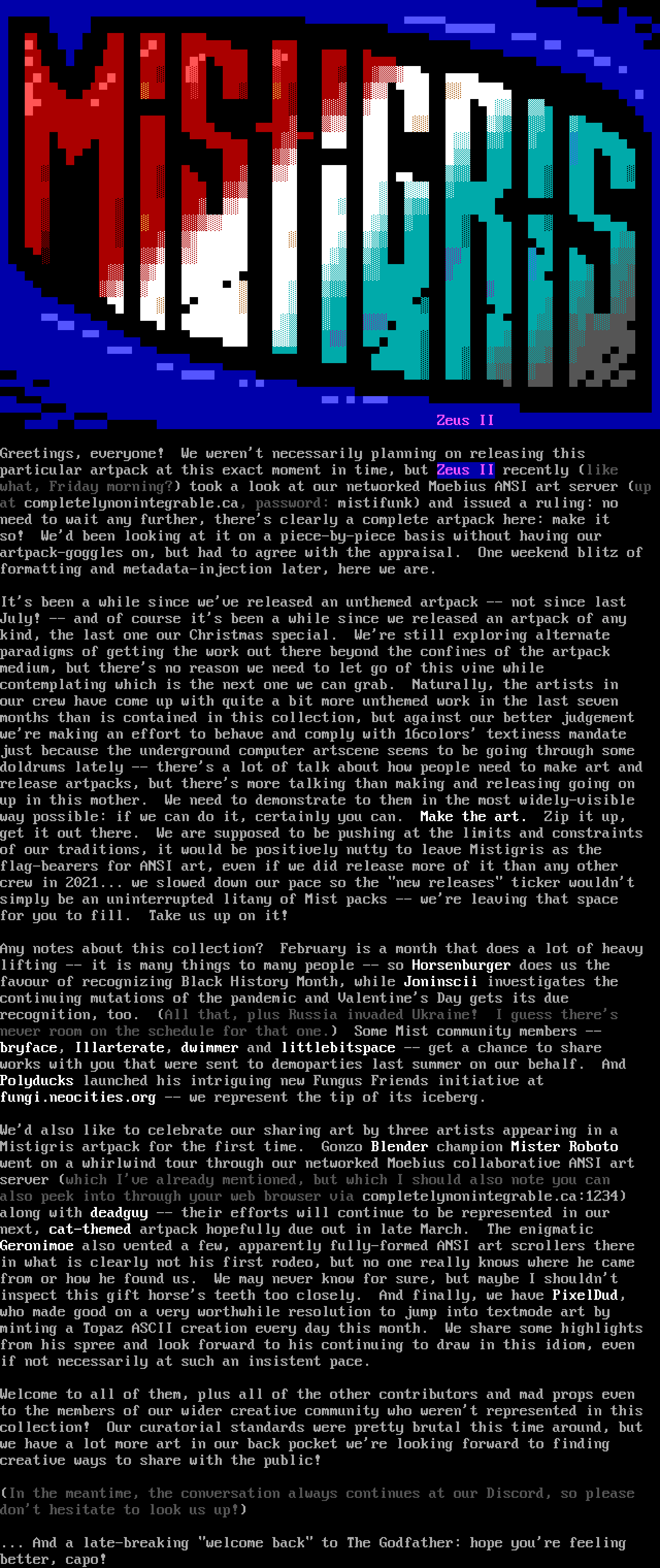 Geronimoe also vented a few, apparently fully-formed ANSI art scrollers there
