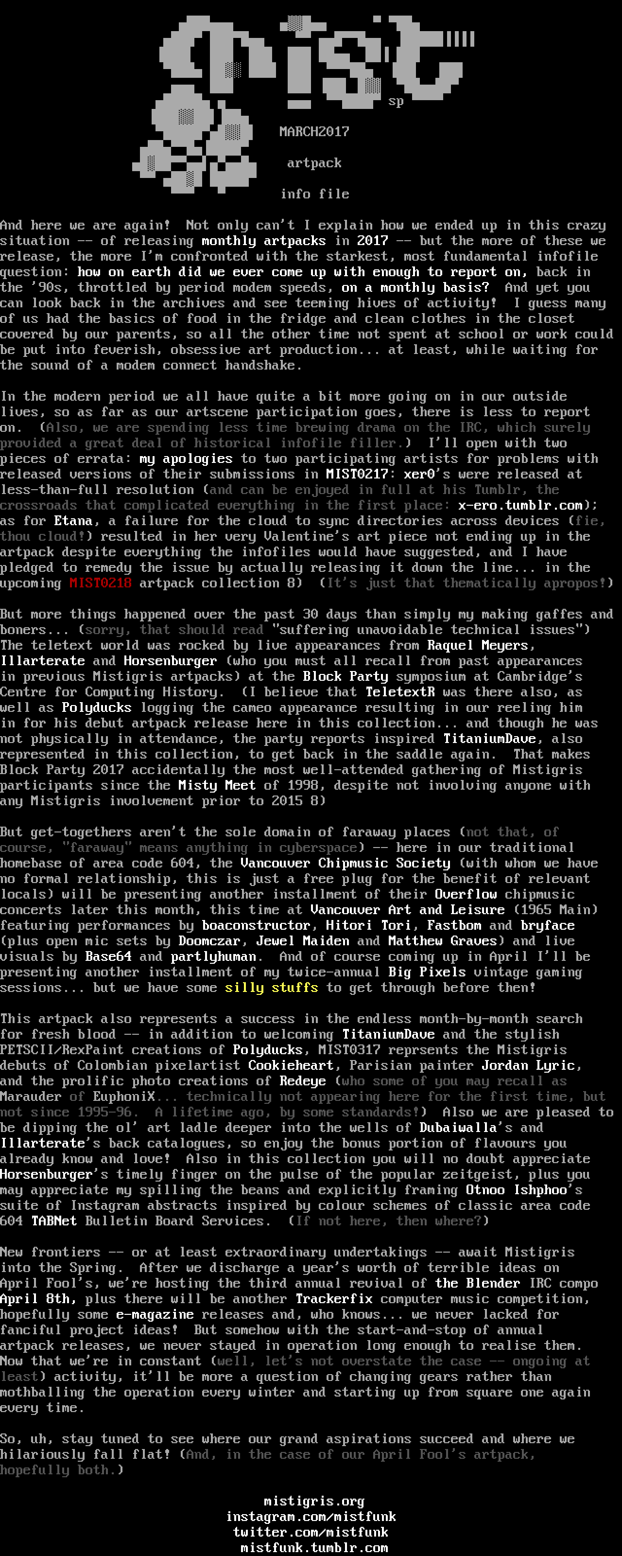 in previous Mistigris artpacks at the Block Party symposium at Cambridges