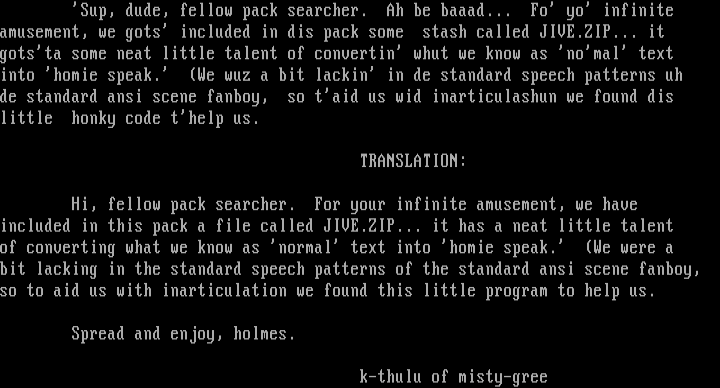 amusement, we gots included in dis pack some stash called JIVE.ZIP... it