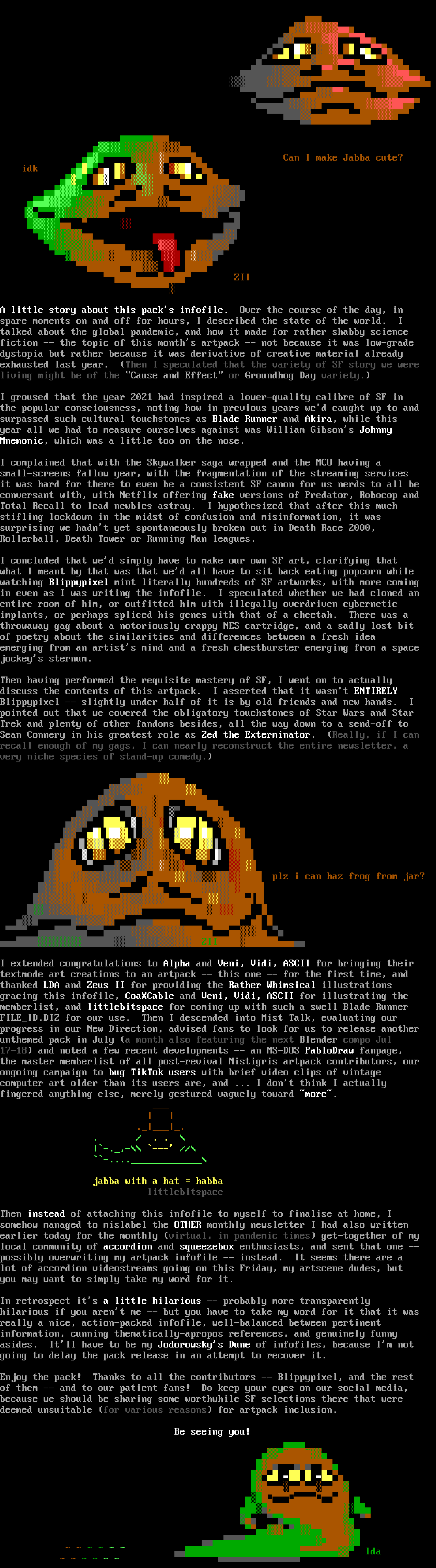 textmode art creations to an artpack -- this one -- for the first time, and