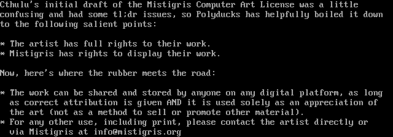 Cthulus initial draft of the Mistigris Computer Art License was a little