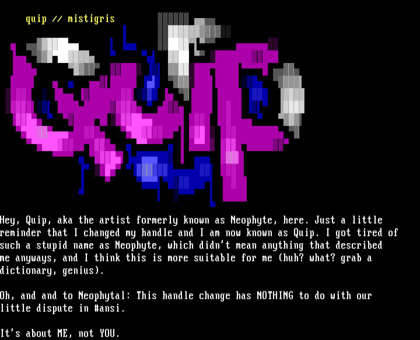 Hey, Quip, aka the artist formerly known as Neophyte, he