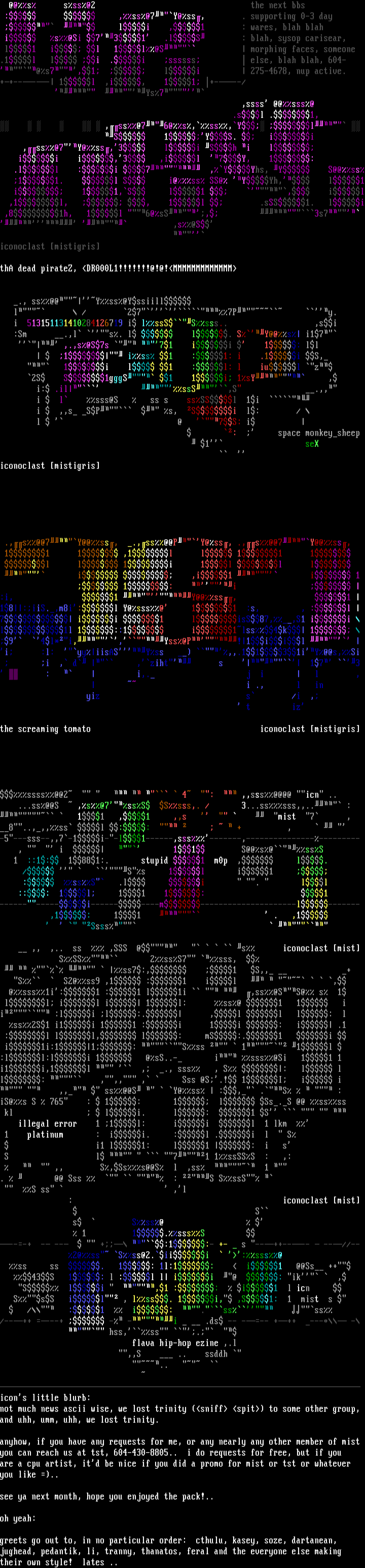 not much news ascii wise, we lost trinity sniff spit to some