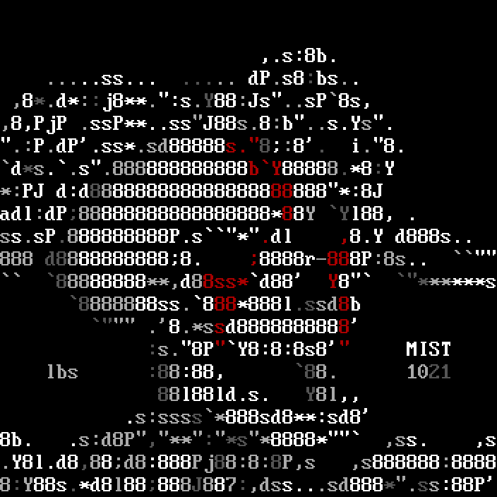888 d88888888888. 8888r-888P:8s.. 88888888**,d88ss*d88 Y8 ******s 8888888ss.888*888l.ssd8b