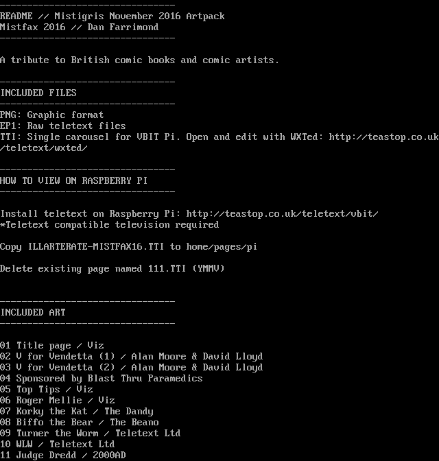 TTI: Single carousel for VBIT Pi. Open and edit with WXTed: http://teastop.co.uk/teletext/wxted/