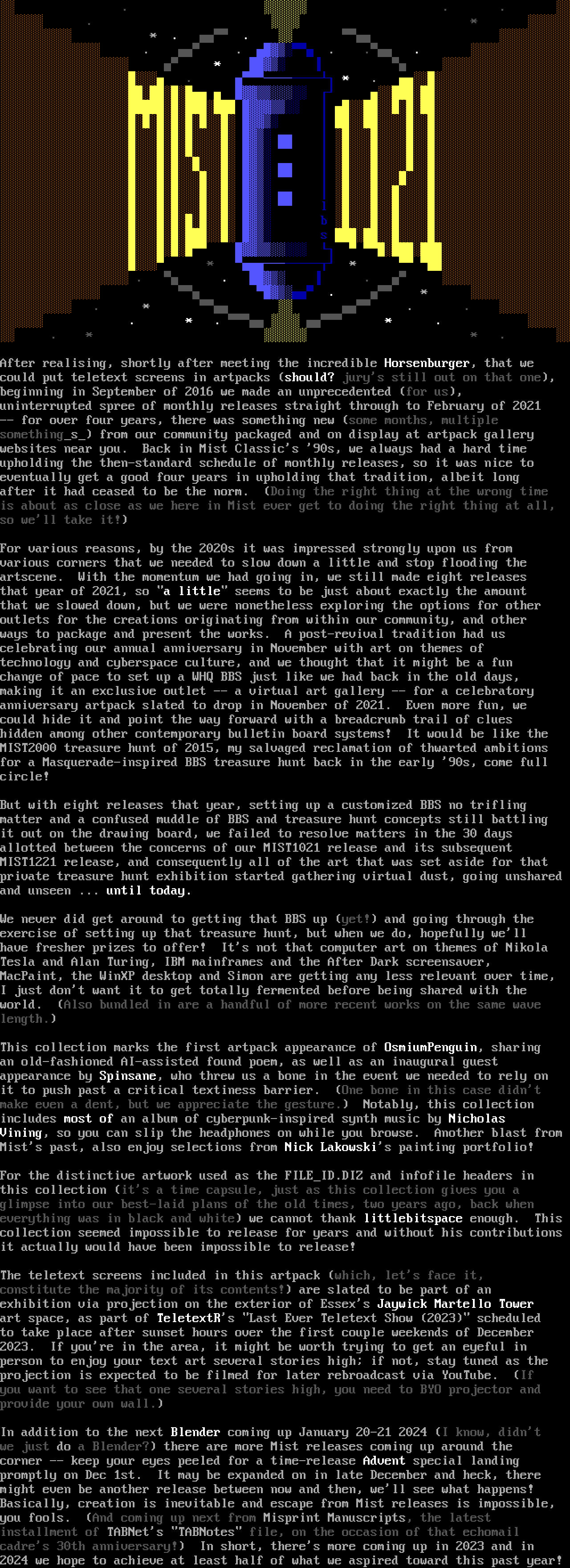 art space, as part of TeletextRs Last Ever Teletext Show 2023 scheduled