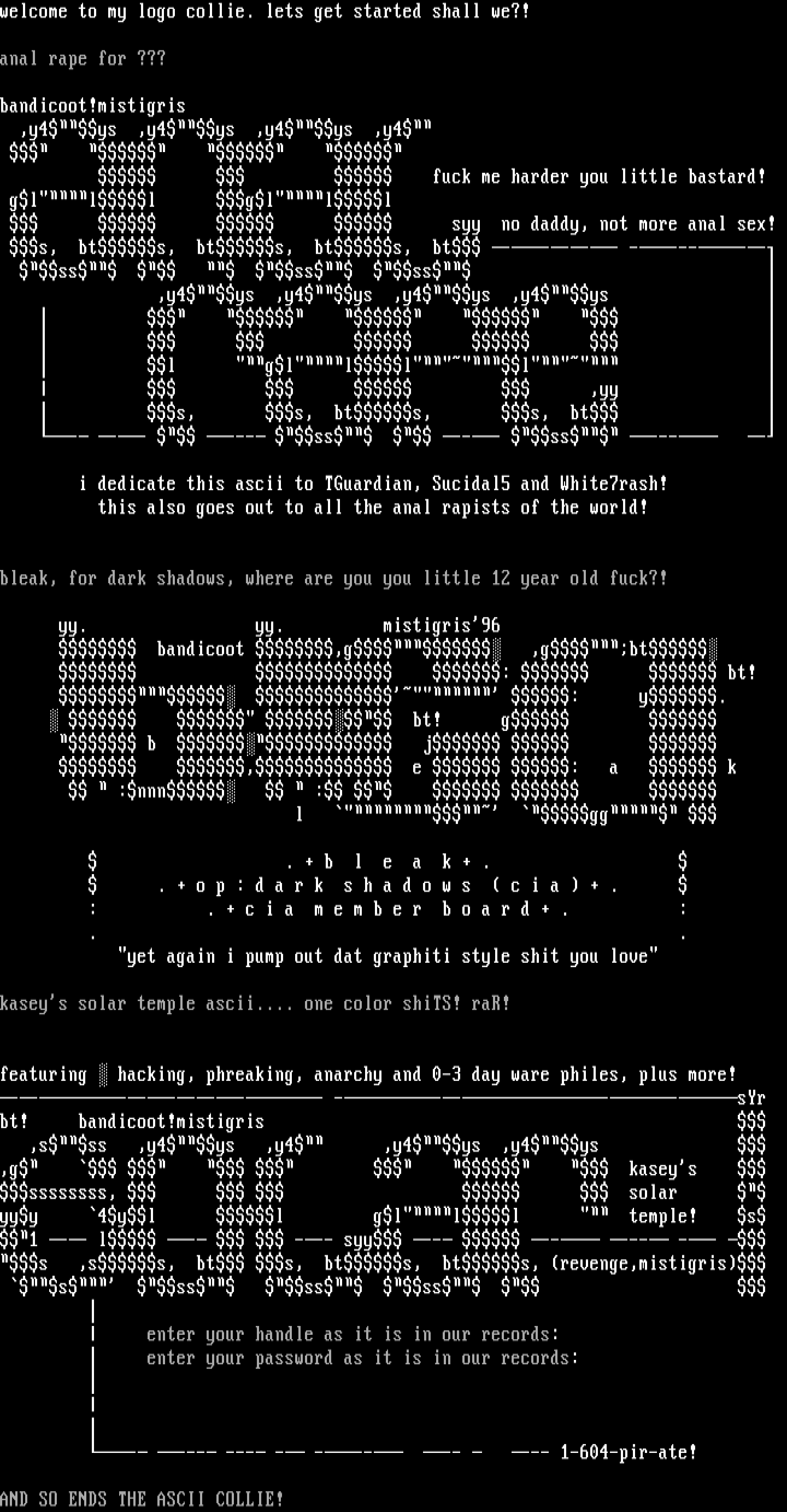 kaseys solar temple ascii.... one color shiTS! raR!