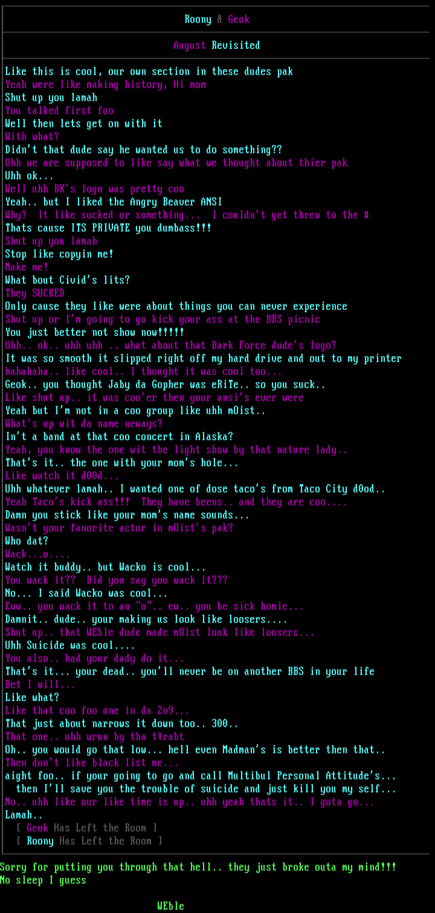 Shut up or Im going to go kick your ass at the BBS picnic