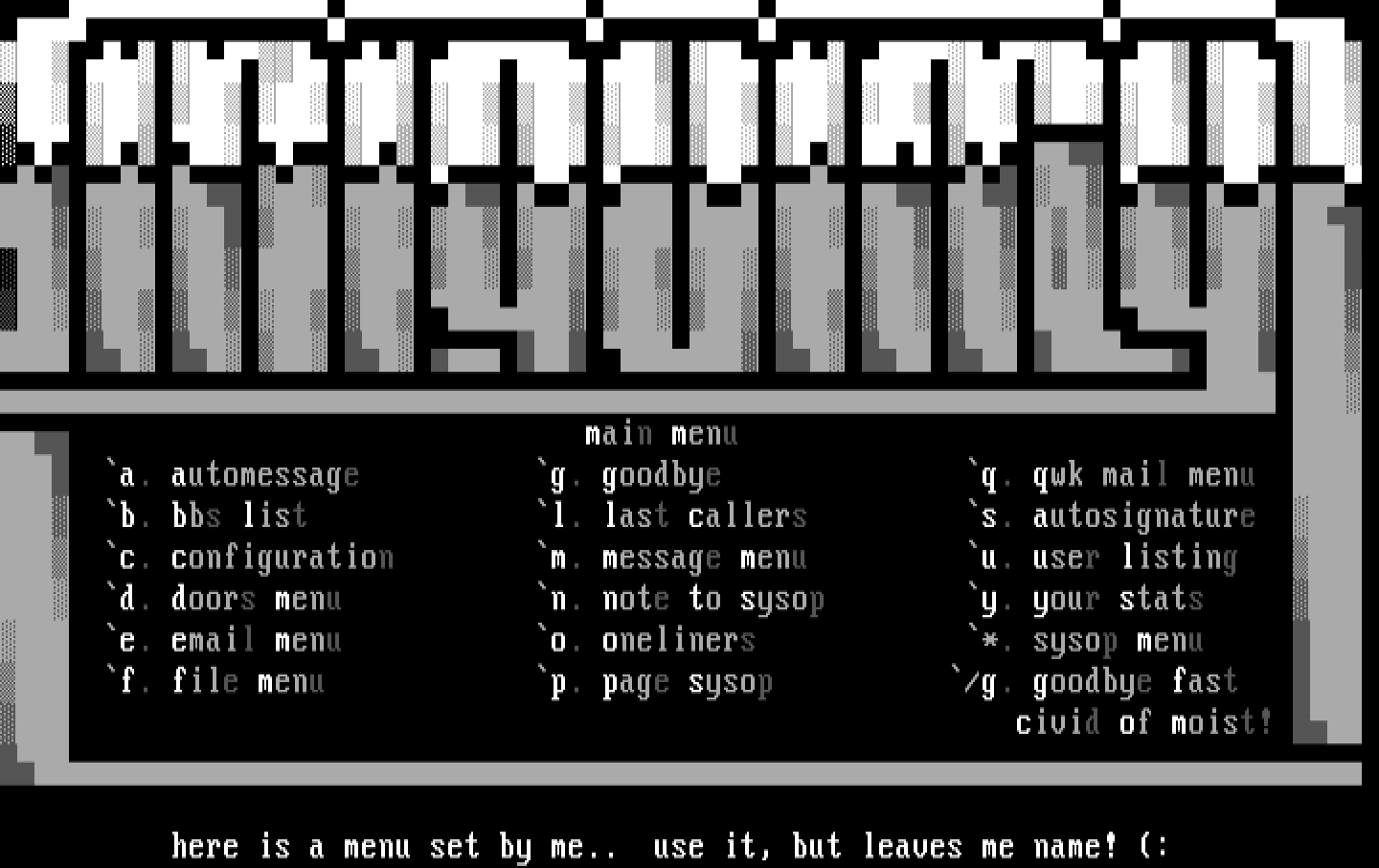 a. automessage g. goodbye q. qwk mail menu