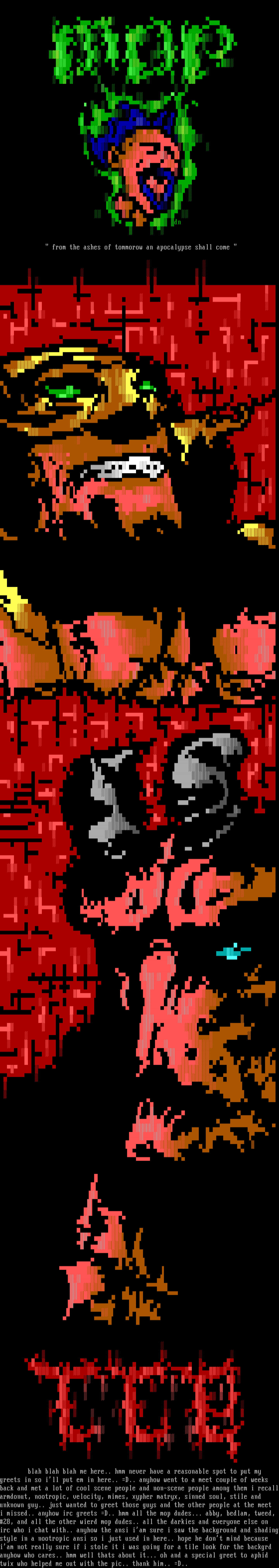 i missed.. anyhow irc greets D.. hmm all the mop dudes... abby, bedlam, tweed,