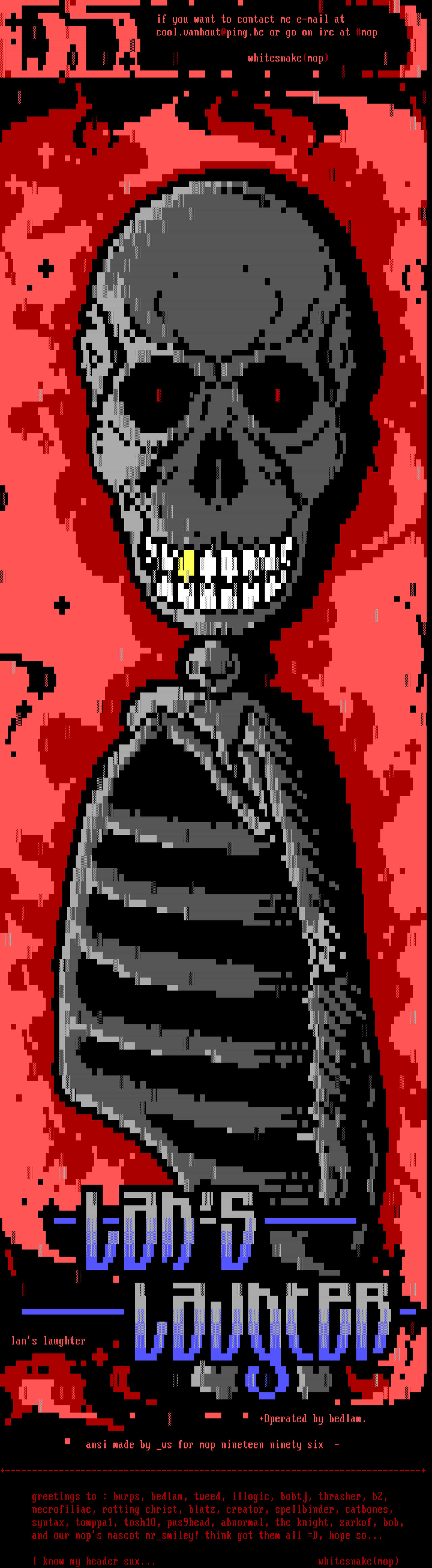 greetings to : burps, bedlam, tweed, illogic, bobtj, thrasher, b2,