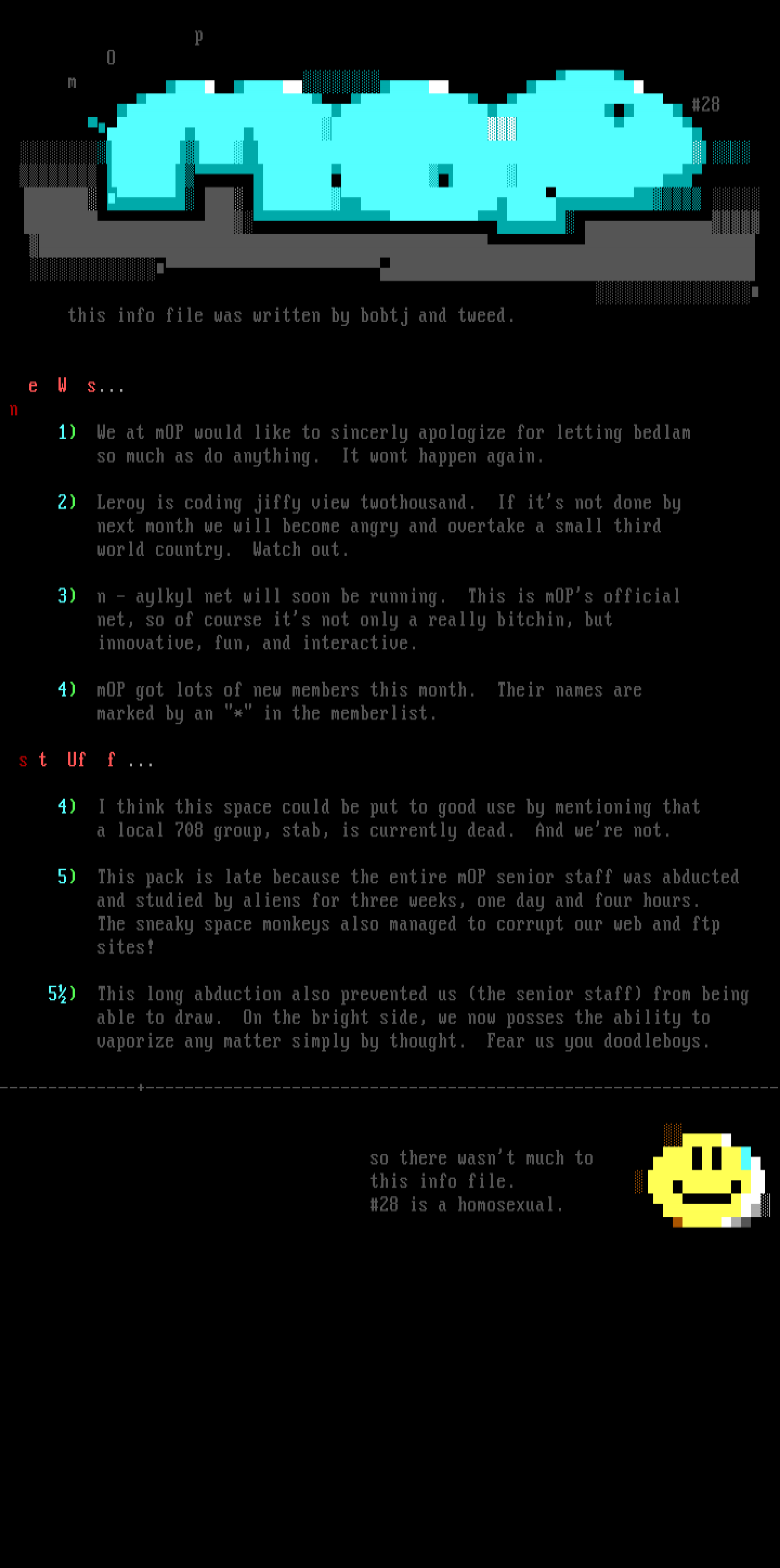 1 We at mOP would like to sincerly apologize for letting bedlam