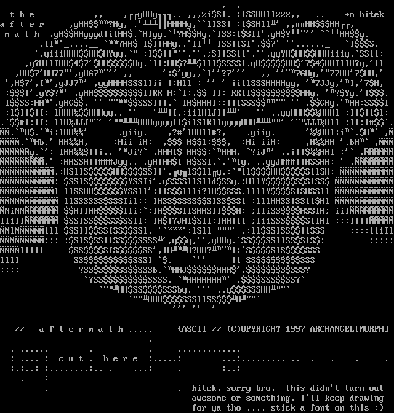 // a f t e r m a t h ..... ASCII // COPYRIGHT 1997 ARCHANGELMORPH