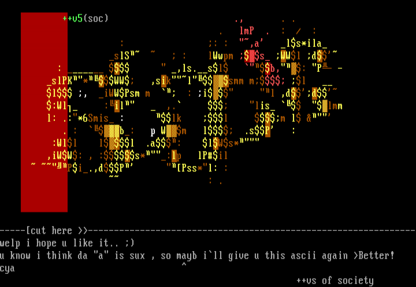 u know i think da a is sux , so mayb ill give u this ascii again Better! cya