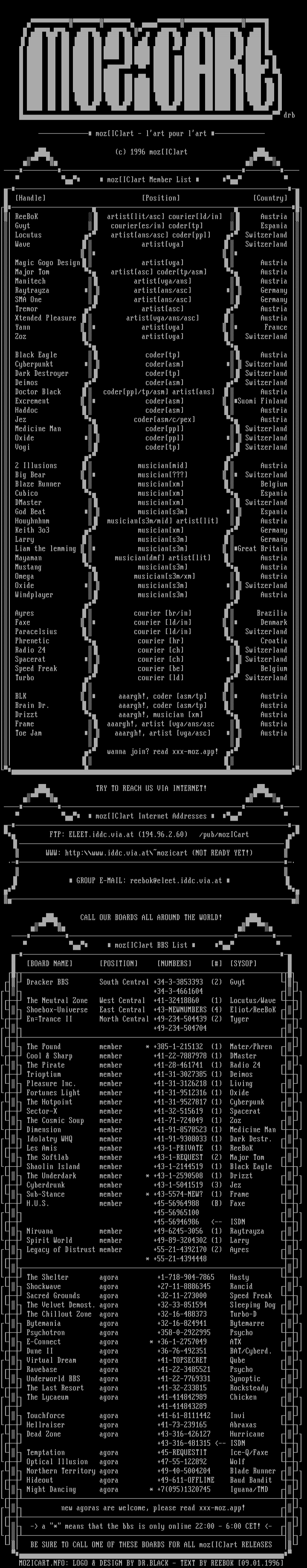 MOZICART.NFO: LOGO DESIGN BY DR.BLACK - TEXT BY REEBOK 09.01.1996