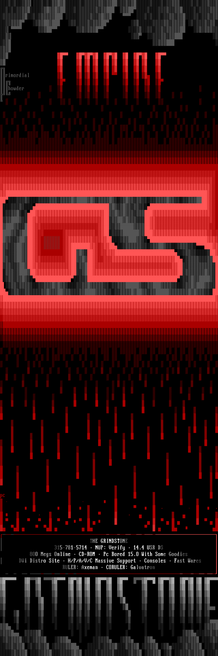 THE GRINDSTONE 3157815714 NUP: Verify 14.4 USR DS 8OO Megs Online CD-ROM Pc Bored 15.O With Some Goodies DWi Distro Site H/P/A/V/C Massive Support Consoles Fast Wares RULER: Axeman CORULER: Galvatron