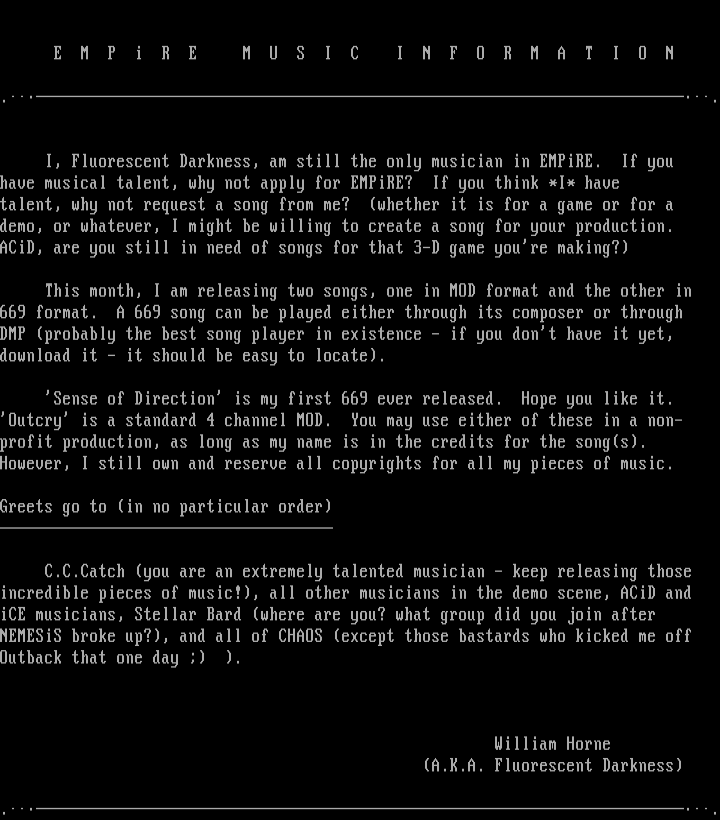 incredible pieces of music!, all other musicians in the demo scene, ACiD and