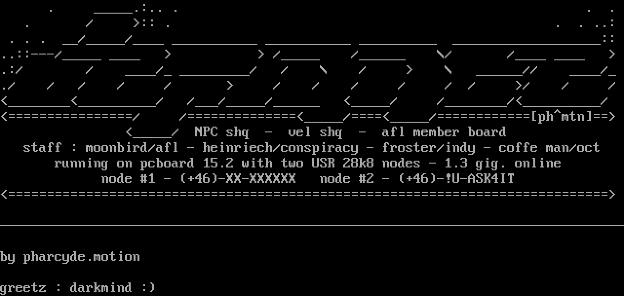 running on pcboard 15.2 with two USR 28k8 nodes - 1.3 gig. online
