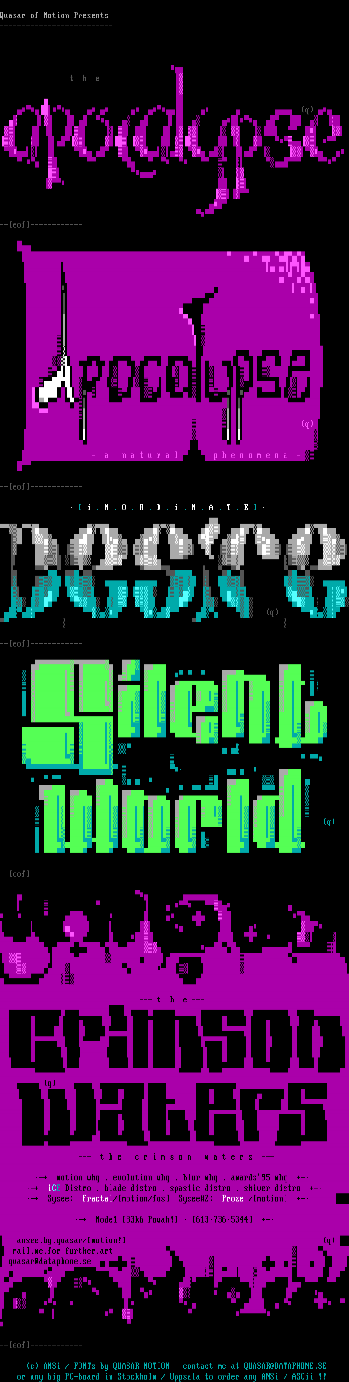 c ANSi / FONTs by QUASAR MOTION - contact me at QUASAR@DATAPHONE.SE