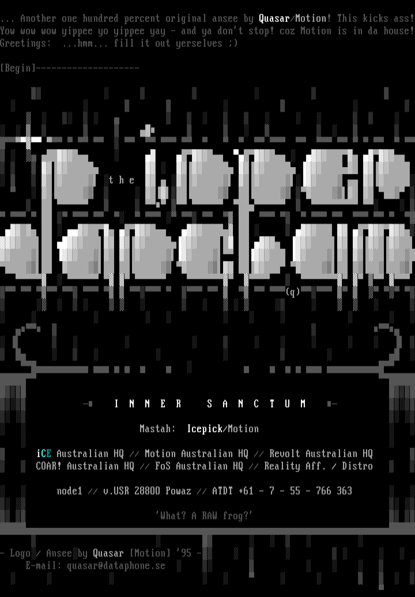 ... Another one hundred percent original ansee by Quasar/Motion! This kicks ass!Yow wow wow yippee yo yippee yay - and ya dont stop! coz Motion is in da house!Greetings: ...hmm... fill it out yerselves
