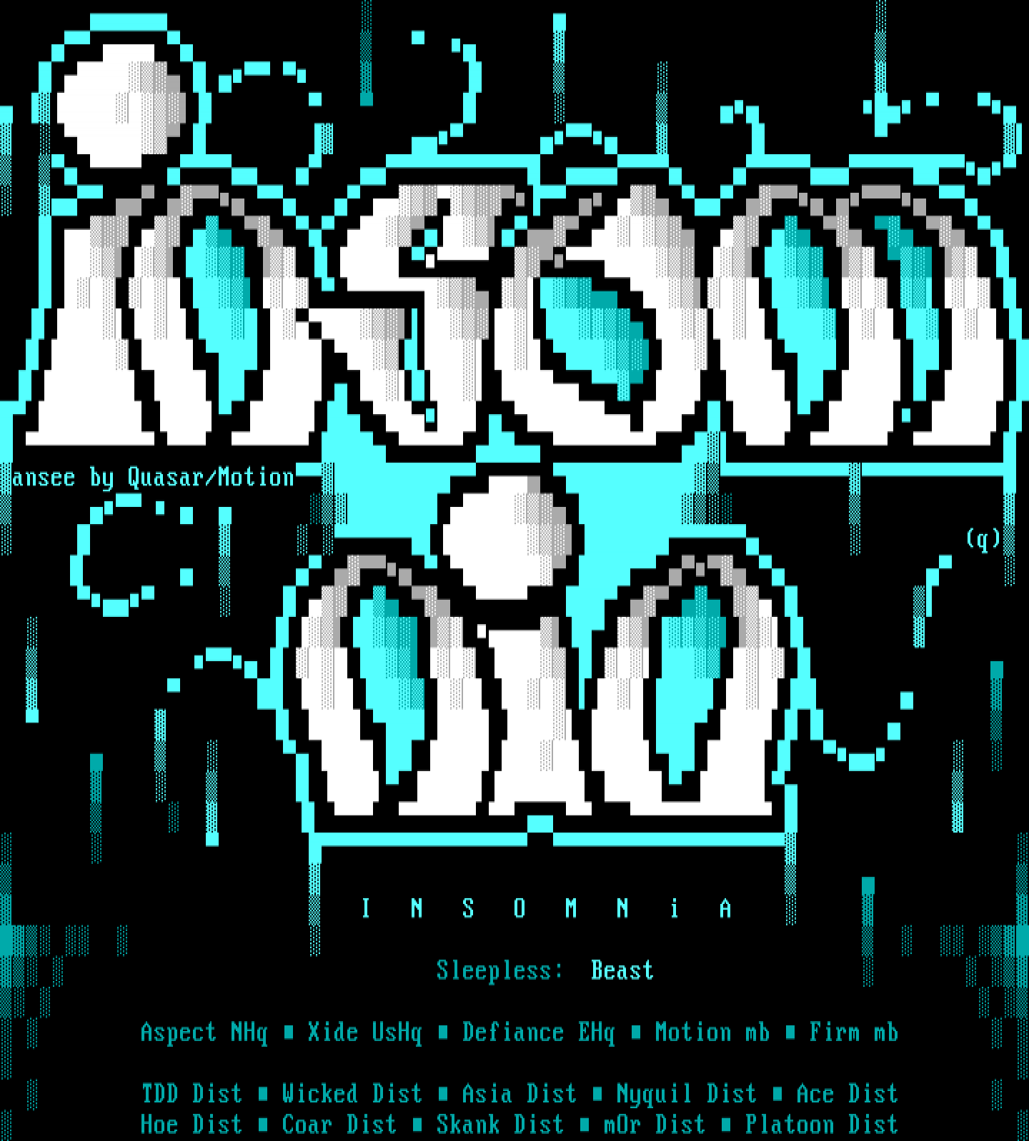 I N S O M N i A Sleepless: Beast Aspect NHq Xide UsHq Defiance EHq Motion mb Firm mb TDD Dist Wicked Dist Asia Dist Nyquil Dist Ace Dist
