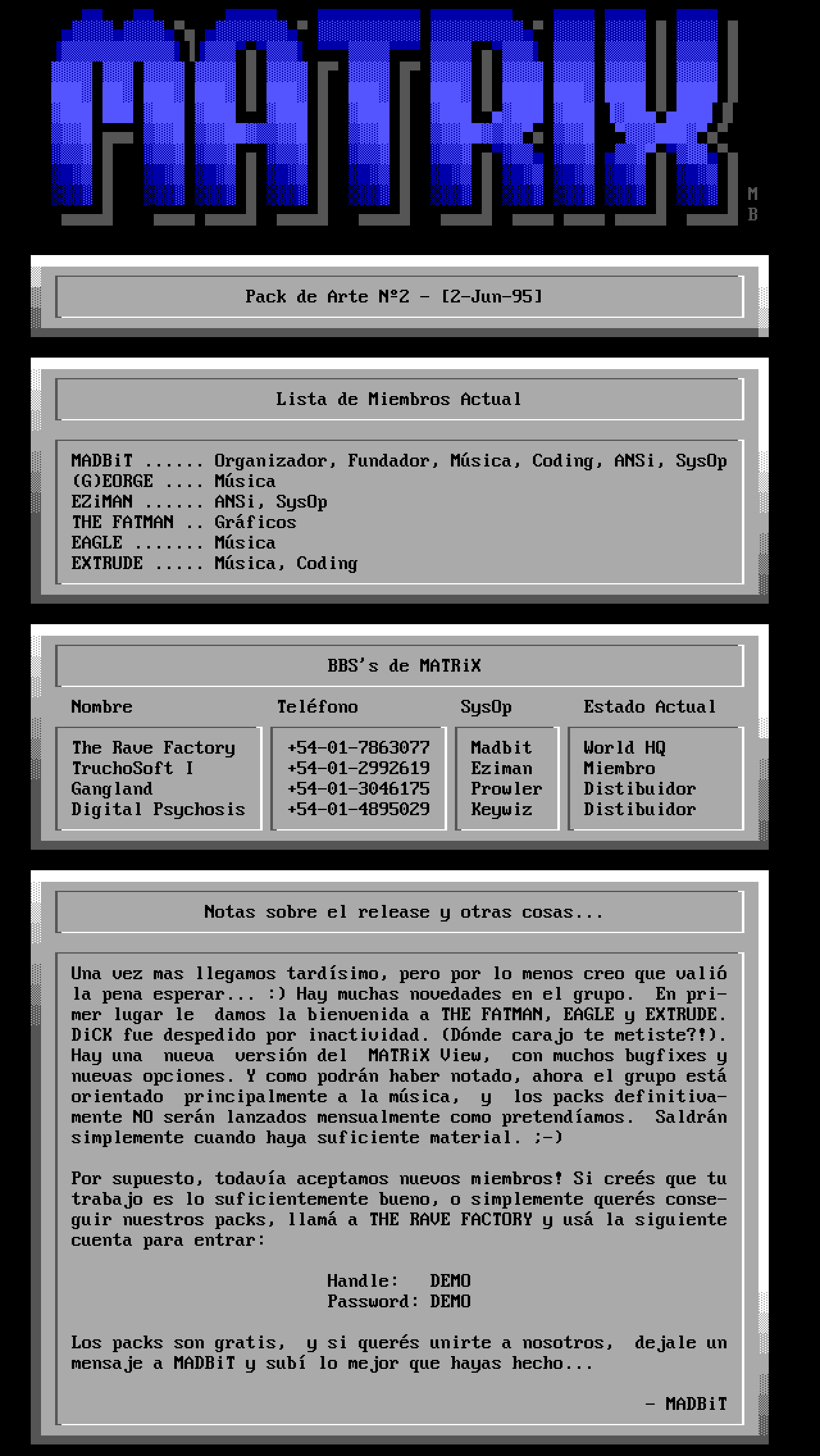 MADBiT ...... Organizador, Fundador, Msica, Coding, ANSi, SysOp