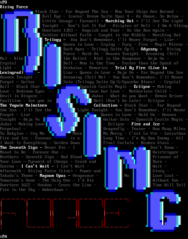 Tonight - Dont Let It End - Diciples of Hell - I Am A Viking Overture 1383 - Anguish and Fear - On the Run Again -